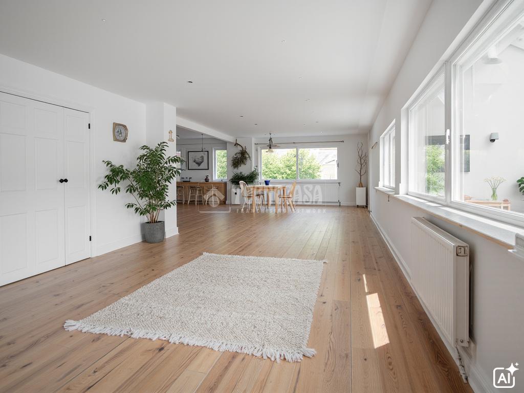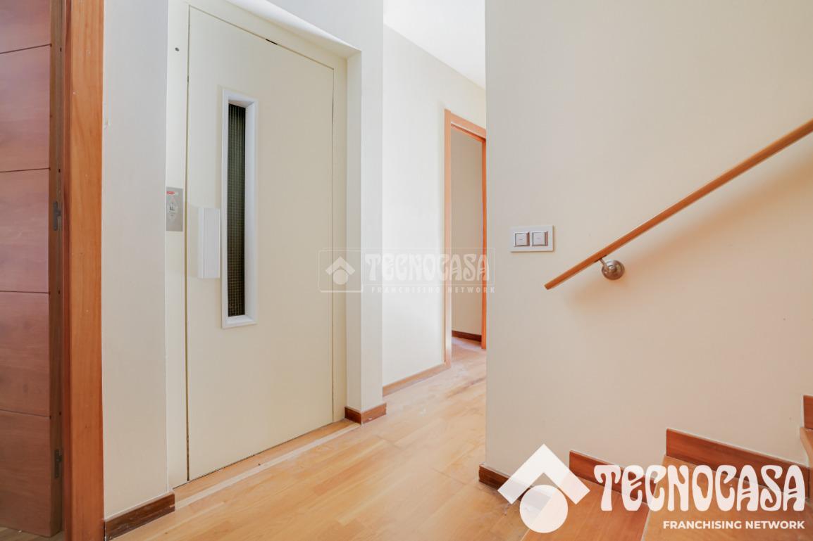 La vivienda dispone de ascensor, calefacción centralizada de gas ciudad mediante radiadores, carpinterías de aluminio con doble vidrio, persianas automáticas y puertas motorizadas de acceso a la finca y al garaje. Los acabados incluyen suelo de gres en planta 0 y parquet natural en planta -1.